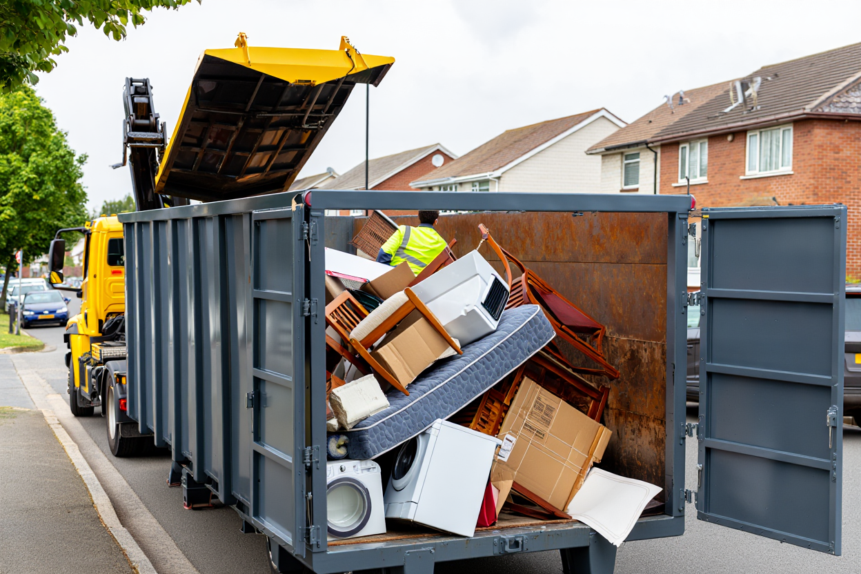 Entrümpelung von Haushalten oder Gewerberäumen: Entfernen von Möbeln, Kartons, Sperrmüll oder sonstigem Inventar, das nicht mehr mitgenommen werden soll.